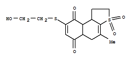| Synonyms: | BRN 4760570;Naphtho(2,1-b)thiophene-6,9-dione, 1,2,5,5a,9a,9b-hexahydro-8-((2-hydroxyethyl)thio)-4-methyl-, 3,3-dioxide;AC1MITAJ;LS-95672;125219-99-0;8-(2-hydroxyethylsulfanyl)-4-methyl-3,3-dioxo-1,2,5,5a,9a,9b-hexahydrobenzo[e][1]benzothiole-6,9-dione |